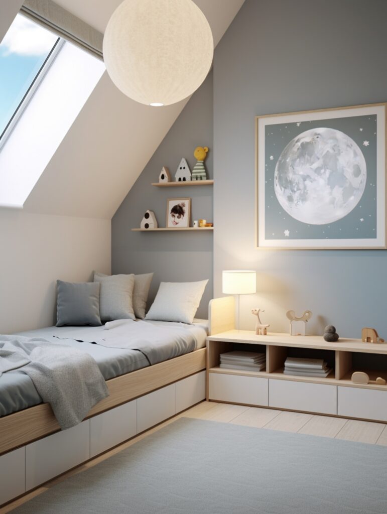 Φυσικά, δε χρειάζονται ούτε πολλά βαζάκια και στολιδάκια στις γωνιές του παιδικού δωματίου. Αυτά που αξίζουν να υπάρχουν σ’ ένα δωμάτιο ύπνου είναι τα λίγα και καλά. Για παράδειγμα, προτιμήστε ένα ντουλάπι το οποίο να έχει από κάτω και συρταριέρα. Προτιμήστε να έχετε κουτιά αποθήκευσης ώστε τα παιδιά σας να συγυρίζουν με ευκολία τα ρούχα και παιχνίδια τους. Και κυρίως μην «βομβαρδίσετε» το δωμάτιό τους με αχρείαστα κάδρα και στολίδια στους τοίχους και στα παράθυρα – λίγα και καλά!