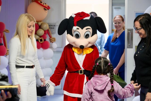 «Η Πρώτη Κυρία και ο Επίσκοπος Μεσαορίας Γρηγόριος επισκέφθηκαν το Γενικό Νοσοκομείο Λευκωσίας και το Μακάρειο Νοσοκομείο και βρέθηκαν κοντά στα παιδιά και στις μητερες που νοσηλεύονται, στέλνοντας ένα μήνυμα φροντίδας, αισιοδοξίας και συμπαράστασης».