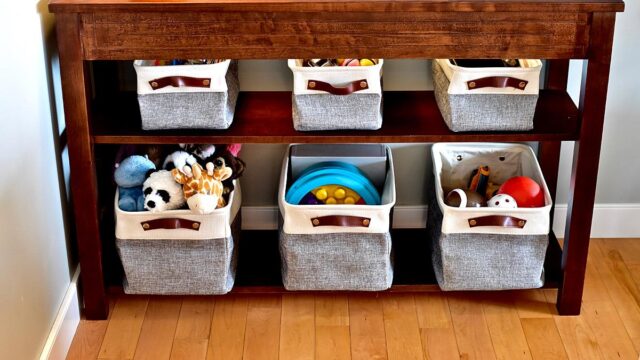 Μπορείς επίσης να δημιουργήσεις ζώνες παιχνιδιού: ένα καλάθι στο σαλόνι, ένα ράφι στο δωμάτιο. Αν τα παιχνίδια έχουν “σπίτι”, υπάρχει ελπίδα να επιστρέφουν εκεί (μερικές φορές τουλάχιστον).